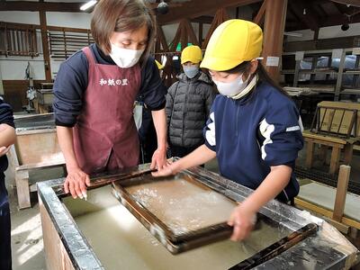 4年生 社会科見学「東秩父村和紙の里」(1月28日) 投稿: 七小 (14:26) 4年生の社会科では埼玉県の各地にある伝統工芸について学習しています。 今回は、東秩父村和紙の里に伺い、熟練の職人さんから1300年つづく和紙づくりの歴史や作業工程を学び、紙漉きの体験もさせていただきました。 また、文化伝習館で昔の道具などを見学したり、移築した古民家では囲炉裏の前で昔の様子をお話しいただいたりしました。 Tweet -