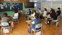 町給食センターから栄養教諭の先生にお越しいただき、全学年で食育の授業をしていただきました。