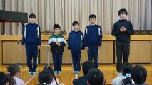 16日(火)には駅伝部の壮行会も行われ、主将が全校児童の前で決意を新たにしました。